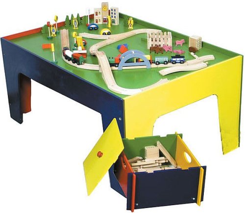 Are you tired of having your children watch TV all day long, day in and day out? If so then they need the The Train Collection Table and Train Set, Complete with Train, Wooden Railways and Bonus Storage Box. Let your childrens imagination run wild with all the fun and excitement that comes along with setting up and playing with the railways and trains! Pretend there's an important delivery you have to make! Or even a Train robbery! What ever your child can think of they will get hours and hours of quality play time in. Which means hours and hours away from the TV! Sit down and play with your children too. Although you must be careful or you might get addicted as well. Enjoy!!